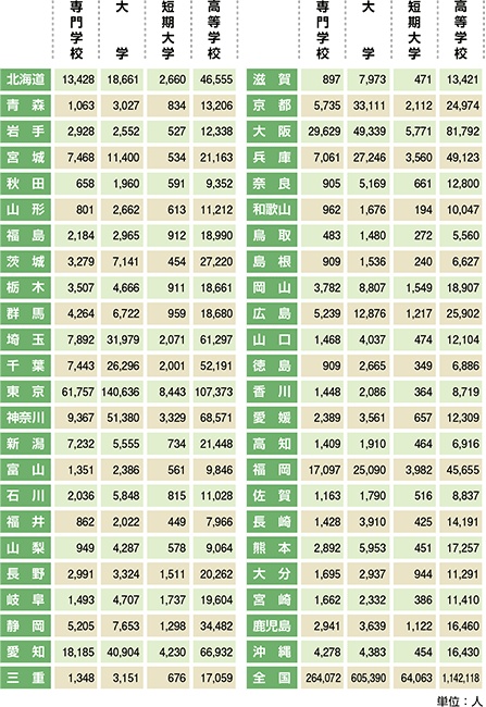 都道府県別/専門学校・大学・短期大学・高等学校