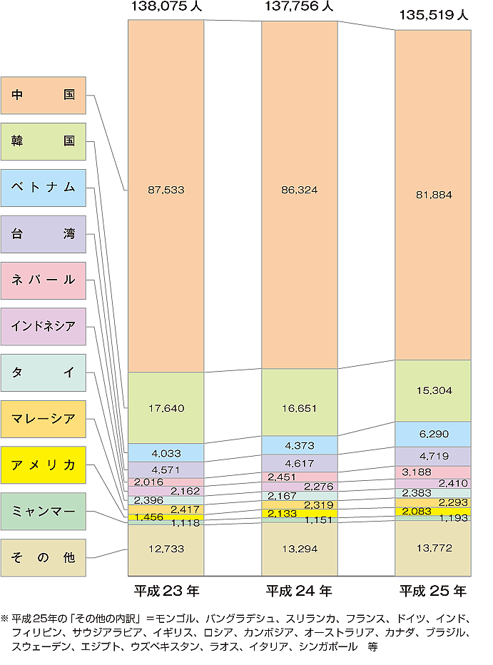 データ資料: 「平成25年度外国人留学生在籍状況調査結果」独立行政法人日本学生支援機構