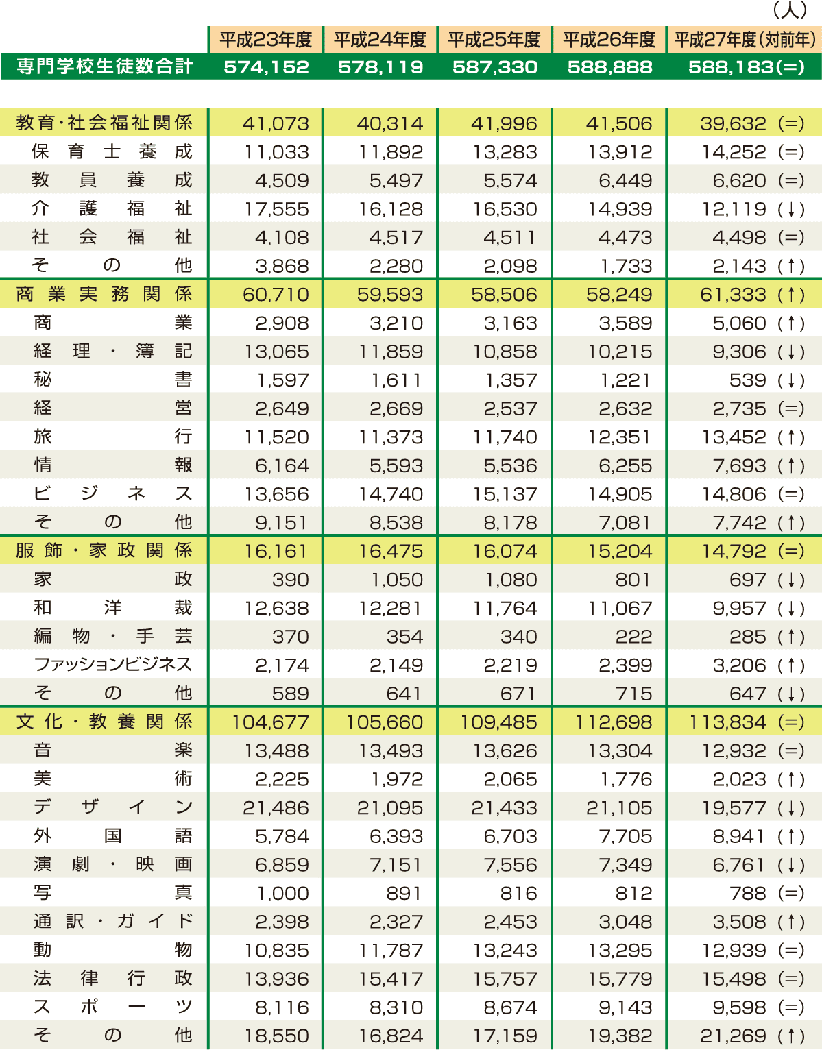 専門学校 ジャンル別生徒数(2)