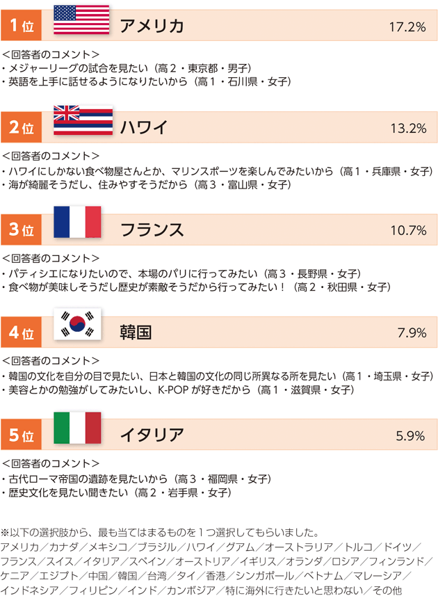 | 高校生のライフスタイル(3) 行ってみたい国・地域 |