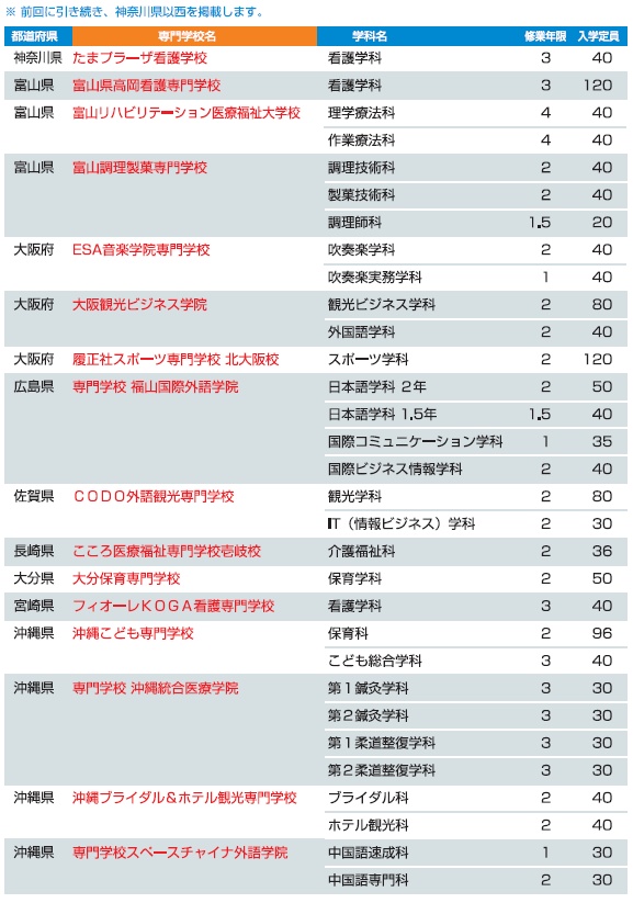 | ※ | 各都道府県にて認可を受け、2017年4月に開校された私立の専修学校の専門課程を記載しています。 各都道府県の私立学校担当の部署へ調査した結果です。 |