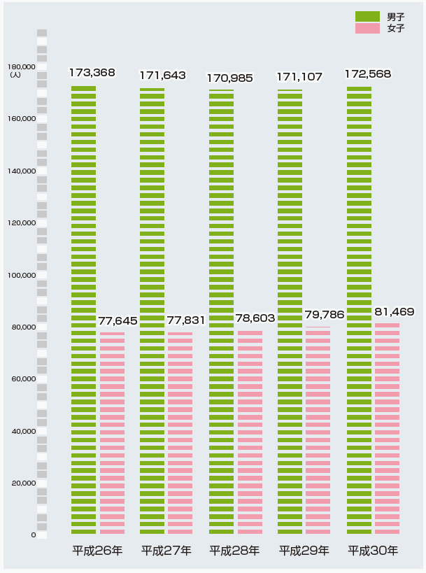 データ資料: 各年の学校基本調査(文部科学省ホームページ)よりグラフに