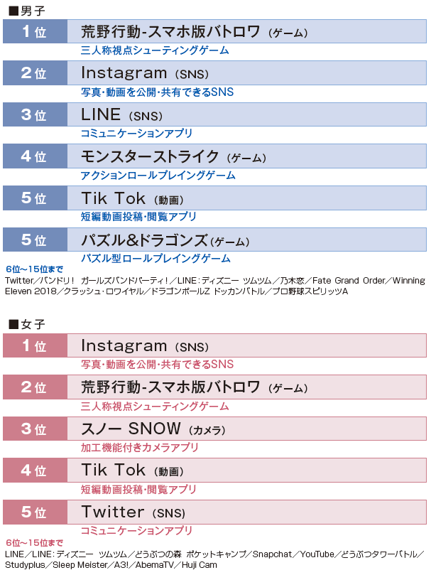 | 友達とのあいだで「今、流行っているアプリ」や「話題になっているアプリ」のアプリ名 をフリーワードで回答してもらいました。 |