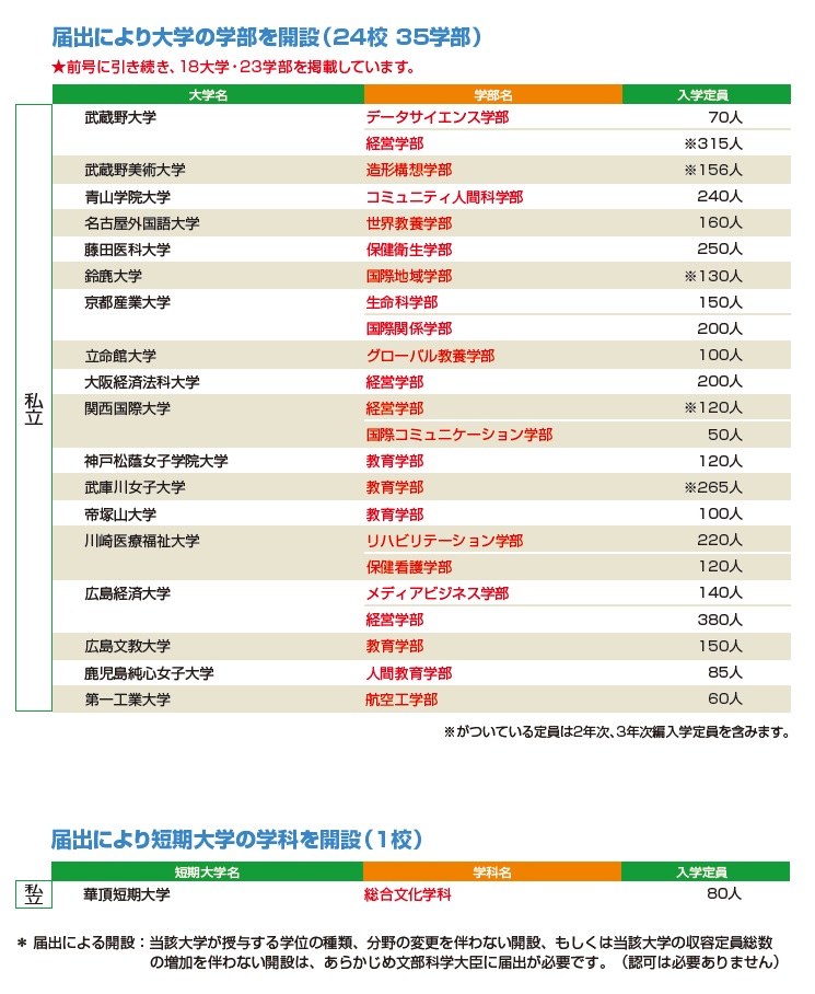 大学・短期大学 開設一覧(3)