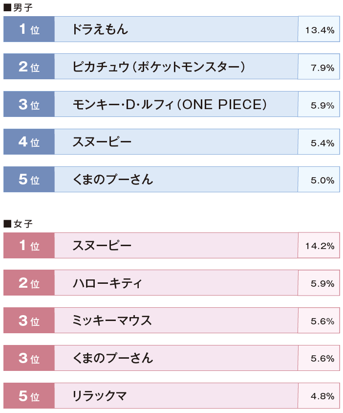 | 好きな「キャラクター」について、その名前をフリーワードで2つまで回答してもらいました。 |