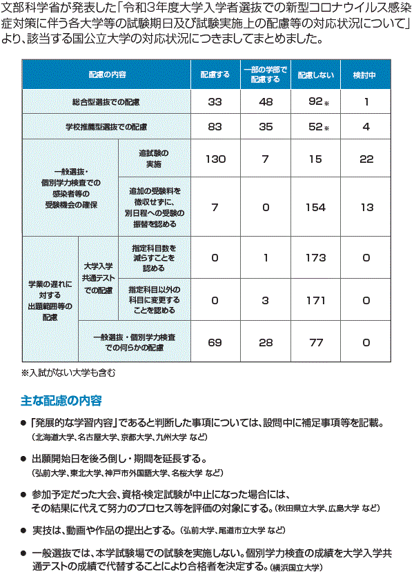 出典: 文部科学省ホームページ「令和3年度大学入学者選抜での新型コロナウイルス