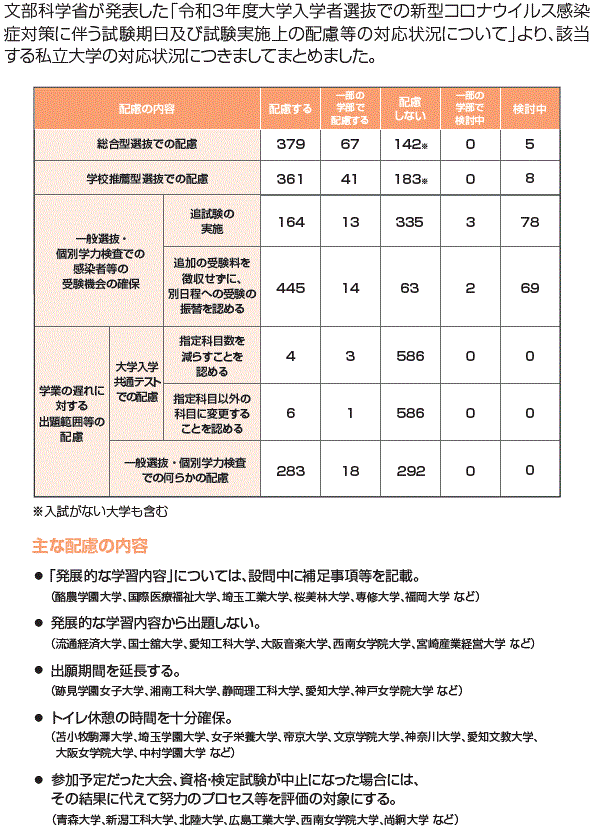| 出典: | 文部科学省ホームページ「令和3年度大学入学者選抜での新型コロナウイルス |