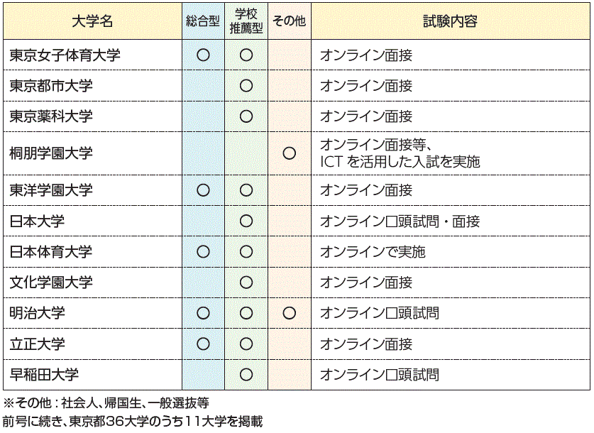 | 東京都の大学でオンライン入試を実施する大学一覧 |