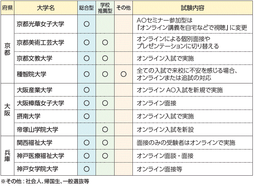 | 関西の大学でオンライン入試を実施する大学一覧 |