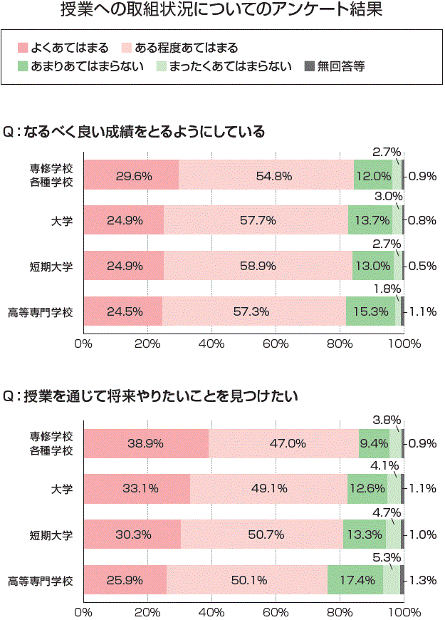| 調査対象 | : | 大学生13,061人、短期大学生1,025人、 高等専門学校生379人、専修学校・各種学校生3,546人 |