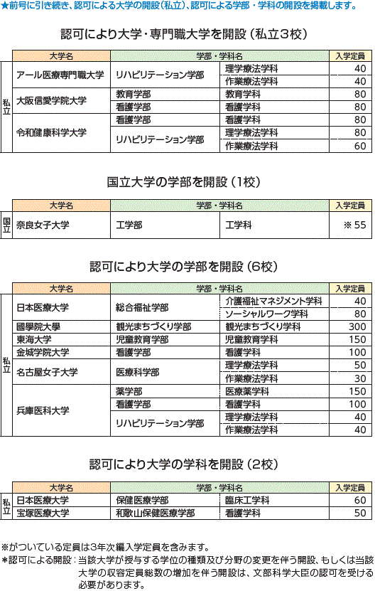 | データ資料 | : | 令和4年度開設予定大学等一覧、令和4年度開設予定学部等一覧、令和4年度国立大学開設予定学部等一覧 (文部科学省ホームページ)より表にして作成 |