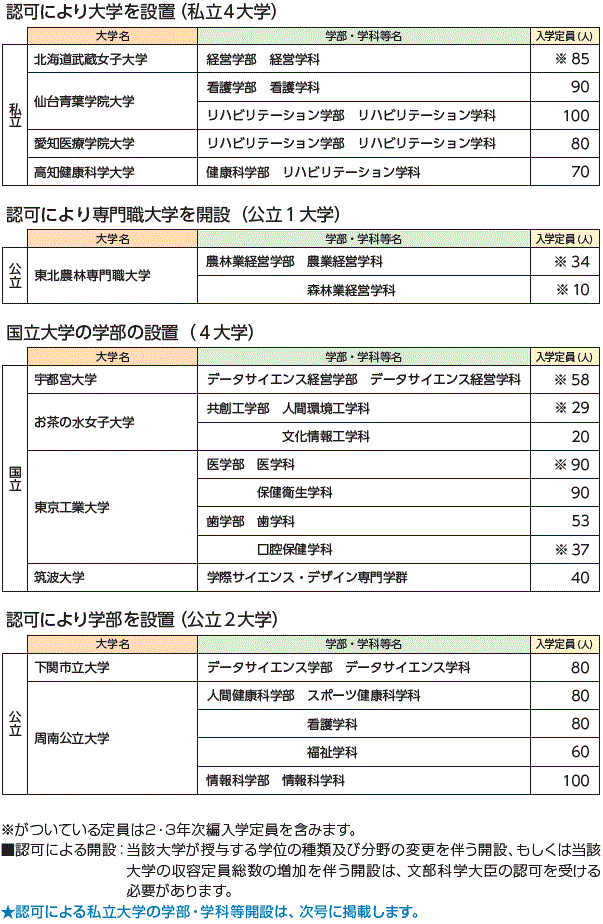 | データ資料 | : | 令和6年度開設予定大学等一覧・令和6年度開設予定学部等一覧・令和6年度国立大学開設予定学部等一覧(文部科学省ホームページ)より表にして作成 |