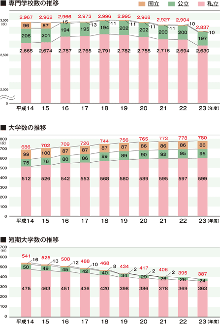 | データ資料: | 平成14~23年度の学校基本調査報告書<文部科学省> |