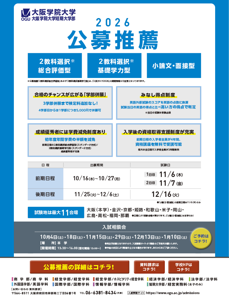 スマホで大阪学院大学の情報をチェック!
