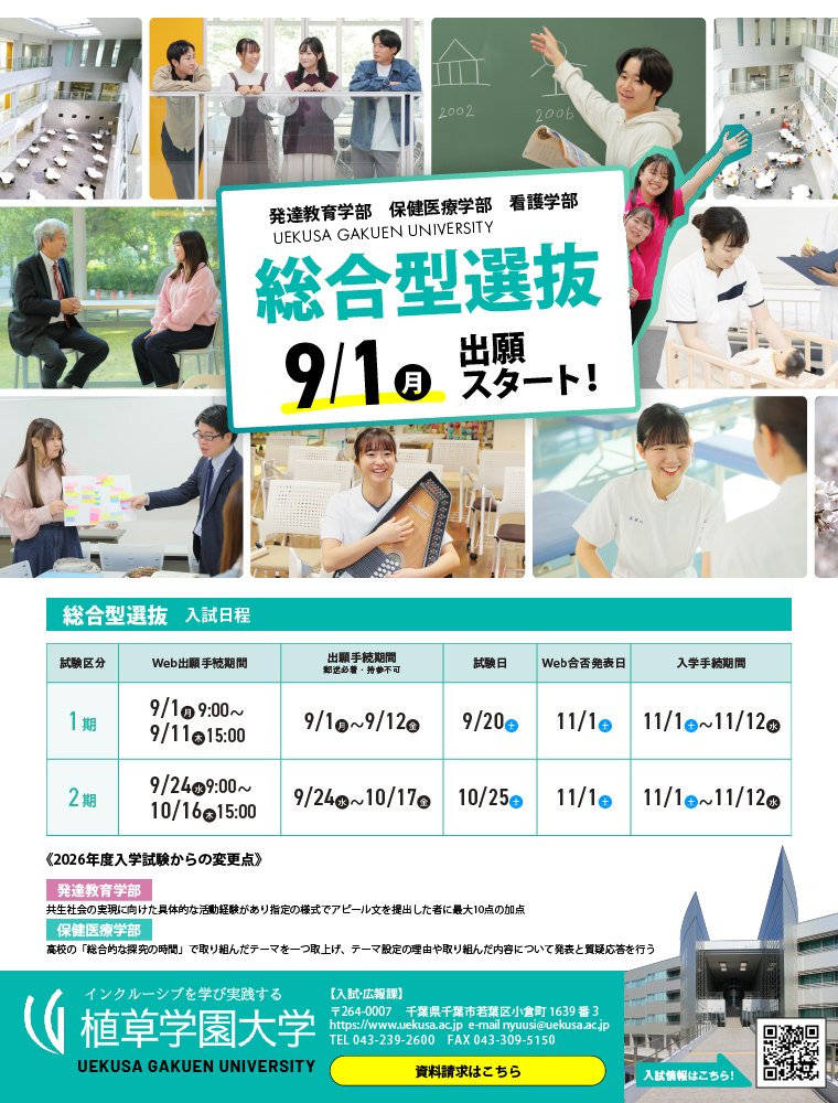 オープンキャンパス イベント一覧 すべて 来校型 オンライン型 11/8(土) 10:00~14:00 個別相談会(学園祭同時開催) 千葉県千葉市若葉区小倉町1639番3 プレゼント特典あり 友達・保護者OK 奨学金制度の紹介 参加する 11/9(日) 10:00~14:00 個別相談会(学園祭同時開催) 千葉県千葉市若葉区小倉町1639番3 プレゼント特典あり 友達・保護者OK 奨学金制度の紹介 参加する 12/20(土) 10:00~14:00 オープンキャンパス 千葉県千葉市若葉区小倉町1639番3 プレゼント特典あり 友達・保護者OK 奨学金制度の紹介 ランチ付き 参加する 3/28(土) 10:00~14:00 オープンキャンパス 千葉県千葉市若葉区小倉町1639番3 プレゼント特典あり 友達・保護者OK 奨学金制度の紹介 ランチ付き 参加する 11/8(土) 10:00~14:00 個別相談会(学園祭同時開催) 千葉県千葉市若葉区小倉町1639番3 プレゼント特典あり 友達・保護者OK 奨学金制度の紹介 参加する 11/9(日) 10:00~14:00 個別相談会(学園祭同時開催) 千葉県千葉市若葉区小倉町1639番3 プレゼント特典あり 友達・保護者OK 奨学金制度の紹介 参加する 12/20(土) 10:00~14:00 オープンキャンパス 千葉県千葉市若葉区小倉町1639番3 プレゼント特典あり 友達・保護者OK 奨学金制度の紹介 ランチ付き 参加する 3/28(土) 10:00~14:00 オープンキャンパス 千葉県千葉市若葉区小倉町1639番3 プレゼント特典あり 友達・保護者OK 奨学金制度の紹介 ランチ付き 参加する 開催スケジュールがありません。 オープンキャンパスのチェックポイント Q. オープンキャンパスに行くメリットは? A. パンフレットやホームページではわからない学校の雰囲気や特徴を知ることができる。オープンキャンパスは、校舎や施設を見学し、説明を聞いたり、質 問したりすることで、学校の雰囲気や特徴を知ることができるイベントだ。興味のある学校にいくつか参加して比較しよう。 ①入学後の生活をイメージできる 学校の雰囲気が体感でき、また授業・実習を体験できるので、入学後のイメージができる。 ②疑問を解消できる 先生や在校生に、入試や授業、学生生活で気になることなどを直接質問ができる。 ③モチベーションがアップする キャンパスを見たり、授業などを体験することで受験や進学へのモチベーションがアップする。 ④入学後のミスマッチが防げる 入学後に「イメージと違った、こんなはずではなかった」と悔やまないように、入学前に学校への理解を深めることができる。 もっと見る Q. オープンキャンパスってどんなことをするの? A. キャンパス見学や体験授業、学校の説明や個別の相談会など、学校を知ることができる絶好のチャンス!オープンキャンパスは、各学校が独自に工夫を凝らしたものとなっ ている。また、友人と参加できるのはもちろん、保護者の方が同伴できるものも多く、保護者向けの説明会や相談会を同時に開催する学校も増えている。オープンキャンパスは、気になる学校をじっくりと観察できる絶好のチャンス。その主な内容を見ていこう。 ●キャンパス見学ツアー 教室、図書館、食堂、体育施設などさまざまな施設・設備を見学。在校生たちがガイド役となって、説明しながら案内してくれる場合が多い。 ●模擬授業・体験授業 講義や実習などを体験することができる。実際に行われている研究や学びの内容を知る大変よい機会となる。 ●学校説明会 学校全体の説明から、学部・学科・コースの内容説明、就職支援体制や就職実績、奨学金制度の紹介などが行われる。保護者向けの説明会を設けている学校もある。 ●入試説明会 一見複雑な入試方式の特徴やポイントを解説してくれる。入試対策のアドバイスが聞けたり、入試対策講座を実施する学校もあるようだ。 ●個別相談会 学校の担当者に、入試、奨学金、就職支援などの疑問を個別に相談ができる。また保護者向けに個別相談の時間を設けている学校もある。 ●その他 オープンキャンパスの参加が、総合型選抜(AO入試)のエントリーを兼ねていたり、オープンキャンパス会場でエントリー受付を行っていたりする学校もある。 ■タイムスケジュール例1 9:30~ 10:00~ 10:30~ 11:10~ 12:20~ 本人 受付開始 学校説明会 模擬授業 キャンパスツアー 昼食 保護者 受付開始 保護者説明会 模擬授業 保護者相談会 昼食 ■タイムスケジュール例2 9:00~ 10:00~ 10:50~ 12:20~ スクールバス送迎 説明会 キャンパスツアー・ミニ体験授業 座談会形式「先輩と話そう」 ←―――保護者相談・個別相談(希望者)――――→ もっと見る Q. オープンキャンパスに行くための事前準備は? A. 参加予約などでスケジュールを決め、パンフレットを取り寄せて学校のことを事前に調べよう! いきなりオープンキャンパス当日に学校に行って、予約が必要だった、定員が一杯だっ た…など参加できないということにならないように、参加したい学校のオープンキャンパスに事前予約が必要かを調べ、予約できる場合は予約をしておくとあわてることがないだろう。 また、たくさんの学部や学科・コースがある学校では、さまざまなプロ