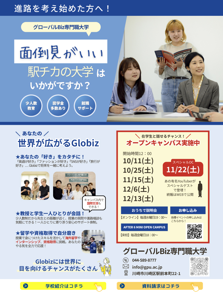 本学を運営する学校法人深堀学園は、76年の歴史において、グローバルビジネス教育の基盤を築き、数多くの人材を輩出してきました。今後は更に、学修フィールドを深く・広く設定し、競争力のある戦略・立案ができるグローバルビジネスリーダーの養成を掲げ、2023年4月にグローバルBiz専門職大学を開学しました。